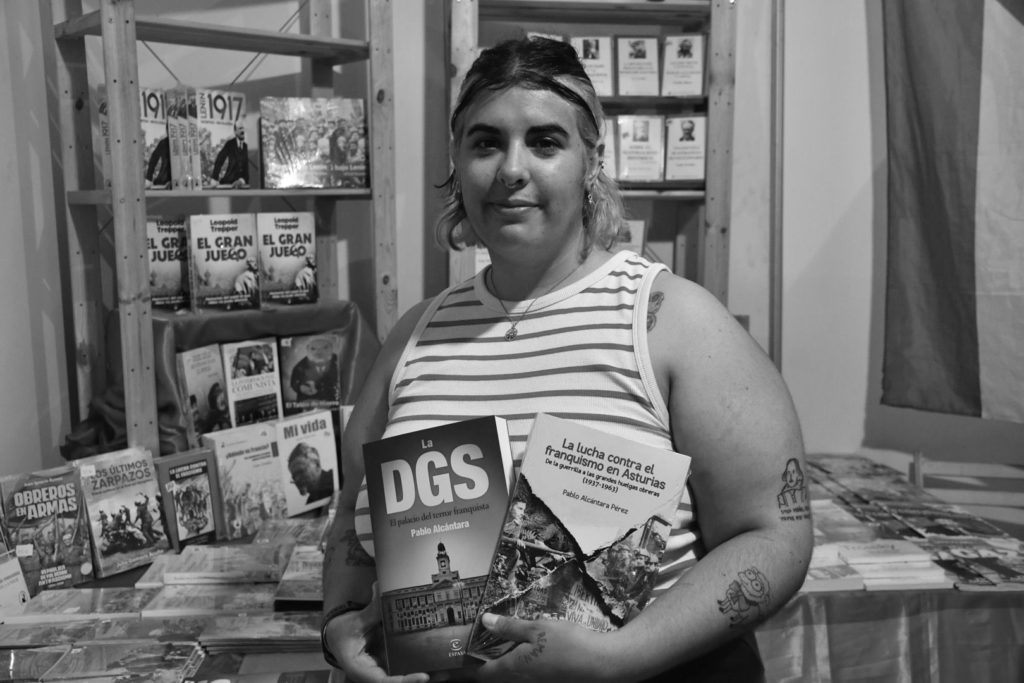Desde la Fundación Federico Engels, Anahí López propone las dos obras de Pablo Alcántara: La lucha contra el franquismo en Asturias y La DGS. El palacio del terror franquista, que se presentó ayer en la Carpa del Encuentro.